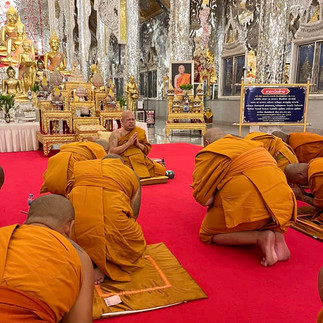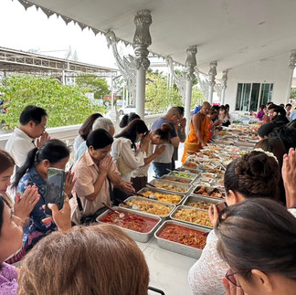 ภาพบรรยากาศพิธีบำเพ็ญกุศลเนื่องในวันเข้าพรรษา พุทธศาสนิกชนร่วมกันฟังธรรมเทศนา ถวายภัตตาหารเพล ถวายสังฆทานรวมชุดใหญ่ แด่คณะสงฆ์วัดวีระโชติธรรมาราม
